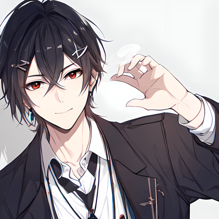 Activation keywords: Shoko, Valvrave, brown hair, short hair, hair ornament, medium hair, and shoko_sashinami